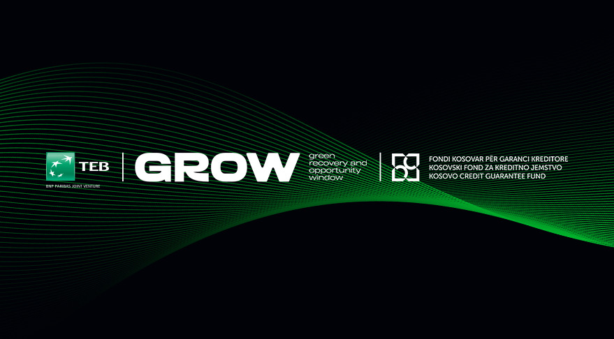 Banka TEB Sh.A. në bashkëpunim me Fondin Kosovar për Garanci Kreditore (FKGK) përmes Dritares së Rimëkëmbjes dhe Mundësive të Gjelbërta (GROW), u ofron bizneseve kushte më të favorshme financimi për investime në efiçiencë të energjisë dhe energji të ripërtëritshme. Kjo skemë synon të lehtësojë qasjen në financa dhe të mbështesë rritjen e qëndrueshme të bizneseve në Kosovë.